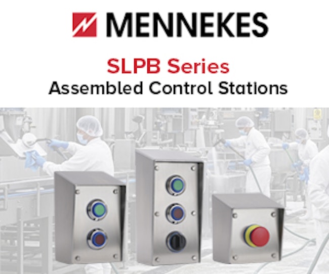 | | Sponsored | | Introducing the SLPB Series— hygienic control solutions for demanding washdown and processing areas. Each fully assembled IP69K and NEMA 4X rated station features a 15° sloped roof for runoff and comes equipped with pushbuttons, indicator lights, or other control devices. Choose from standard pre-configured stations or customize your own. Stainless steel construction is corrosion-resistant, durable and easy to clean. |
