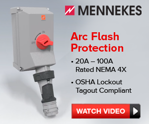 |  | Advertisement | MENNEKES Switched and Interlocked Receptacles are designed to eliminate potential Arc Flash and are OSHA LO/TO compliant. Rated NEMA 4X, units feature a 20A-100A pin and sleeve receptacle factory wired to an HP-rated switch. |