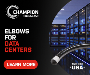 | | Advertisement | | Champion Fiberglass® Elbows offer no burn-through that eliminates repairs. Their lightweight nature contributes to increased installation savings and makes Champion Elbows an ideal solution to protect data center and utility infrastructures. |