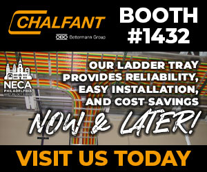 | | Advertisement | For over 75 years, Chalfant Manufacturing has been providing quality ladder tray for every application. Visit booth #1432 to take a look at our tray! |