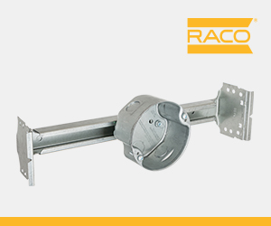 | | Sponsored | | RACO 929 fan-rated box with Kwik-Brace® support helps you secure ceiling fans or heavy light fixtures quickly in new work. Deep box with side knockouts provides extra wiring room. Easy-to-position heavy-duty support accommodates 16-24” joist spaces. |
