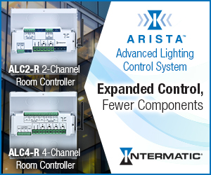 | | Sponsored | New ARISTA ALC2-R 2-Channel / ALC4-R 4-Channel Room Controllers help installers do more with less. The versatile controls offer 0-10 V dimming, plug-load control, standard ON/OFF control, and built-in advanced scheduling capabilities. |