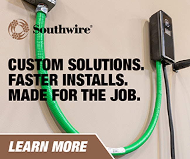 | | Sponsored | Southwire’s QWIK WHIP™ customized conduit whip allows contractors to order a complete assembly that meets project specifications and arrives to the jobsite ready for installation. Learn how our Made in America products and electric vehicle solutions help increase efficiency and reduce installation time. |