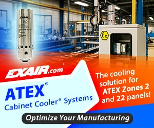 | | Sponsored | | ATEX Cabinet Coolers are certified for use with classified enclosure purge and pressurization systems in Zones 2 and 22 explosive environments. Cooling offered from 1,000 Btu/hr to 5,600 Btu/hr, maintain NEMA 4/4X integrity. |