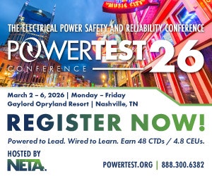 | | Sponsored | | Hosted by NETA – International Electrical Testing Association, PowerTest is the premier electrical power safety & reliability conference. Join the largest annual gathering of experts managing electrical power systems. Earn CEUs & CTDs. Don’t wait — register now and see you in Nashville! |